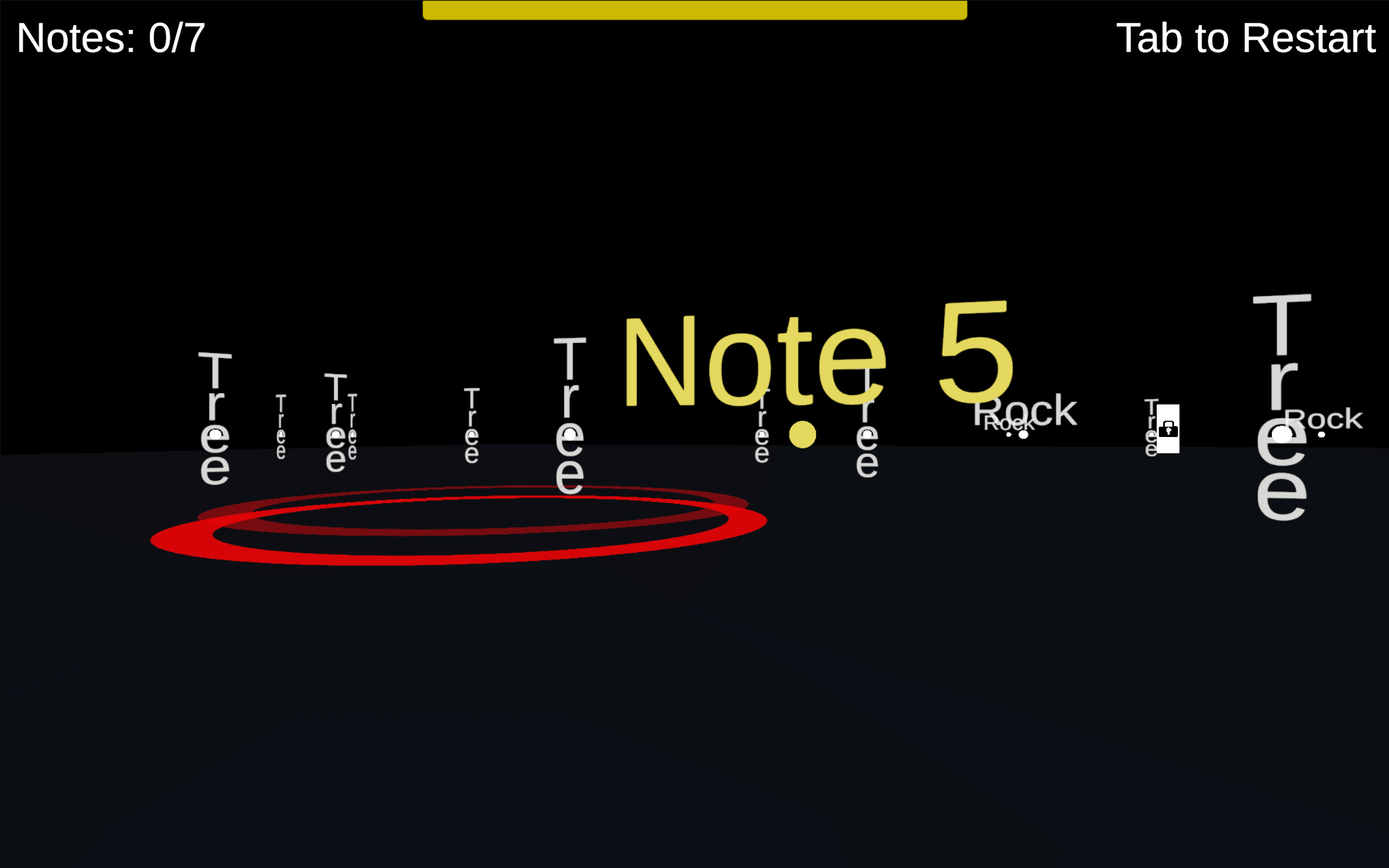 Collect 7 notes to escape a forest where you can't directly see anything.
